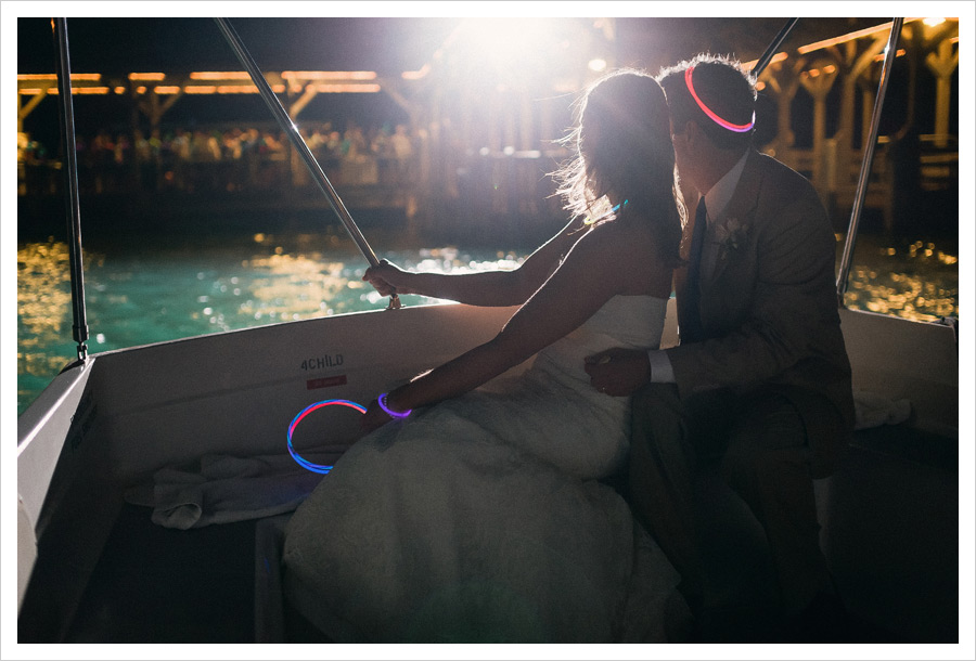 after their ceremony, guests followed the beach to board a catamaran for a breezy, dreamy, golden cocktail hour at sea.