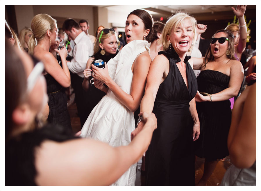 katie enjoyed the first half of the reception in her wedding dress before changing into another, more casual but equally fabulous dress before the real dance party kicked in.