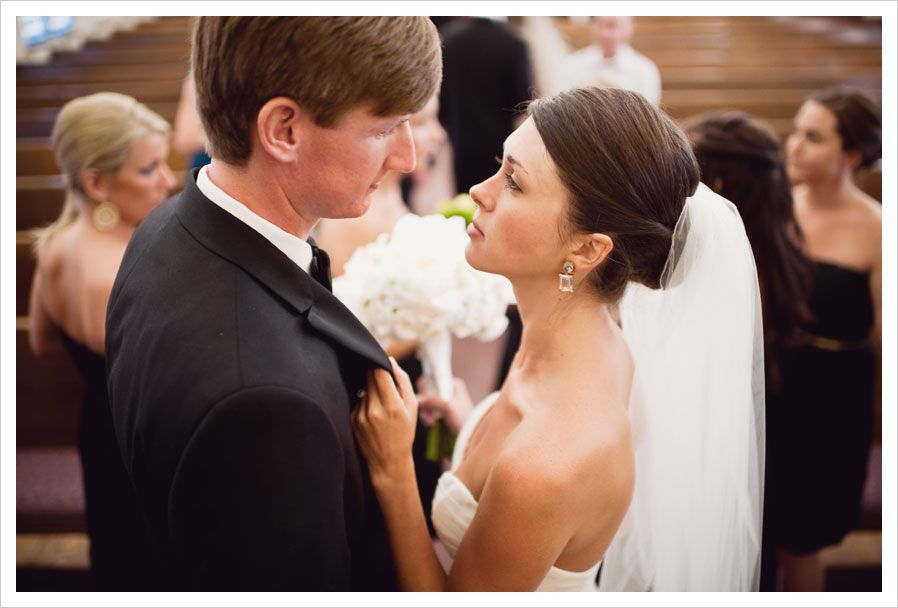 we stayed after the ceremony for a few family portraits in the sanctuary and, as the families were gathering, matt grabbed this shot of the newlyweds having their own sweet moment in the midst of the post ceremony excitement: