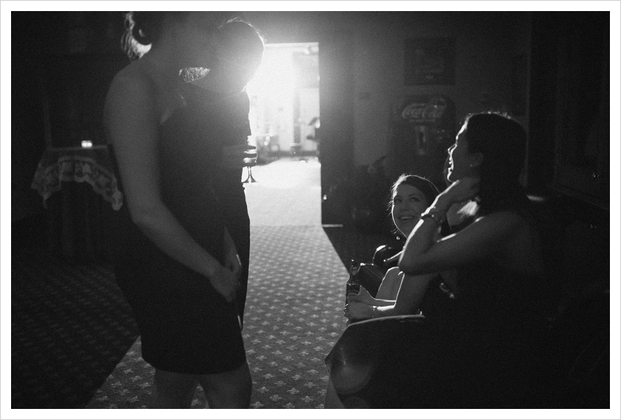 meanwhile, the bridesmaids snuck away to be introduced. the holding room: ;)