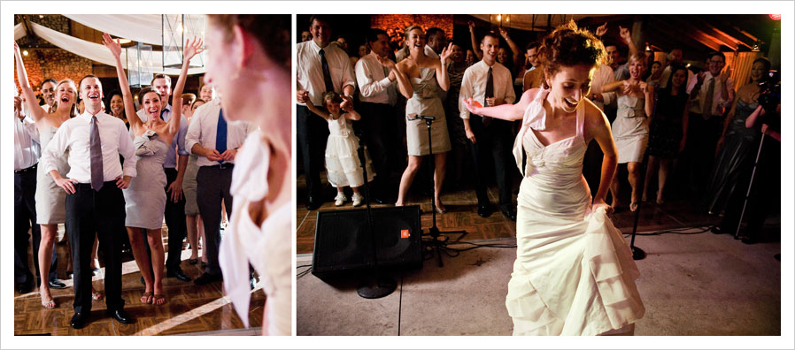 the reception started with a sweet first dance and continued into a great celebration of dancing, laughing and general fun! the band was full of energy and a few suprises- talking more than one guest into a solo dance on stage! a few of our faves: