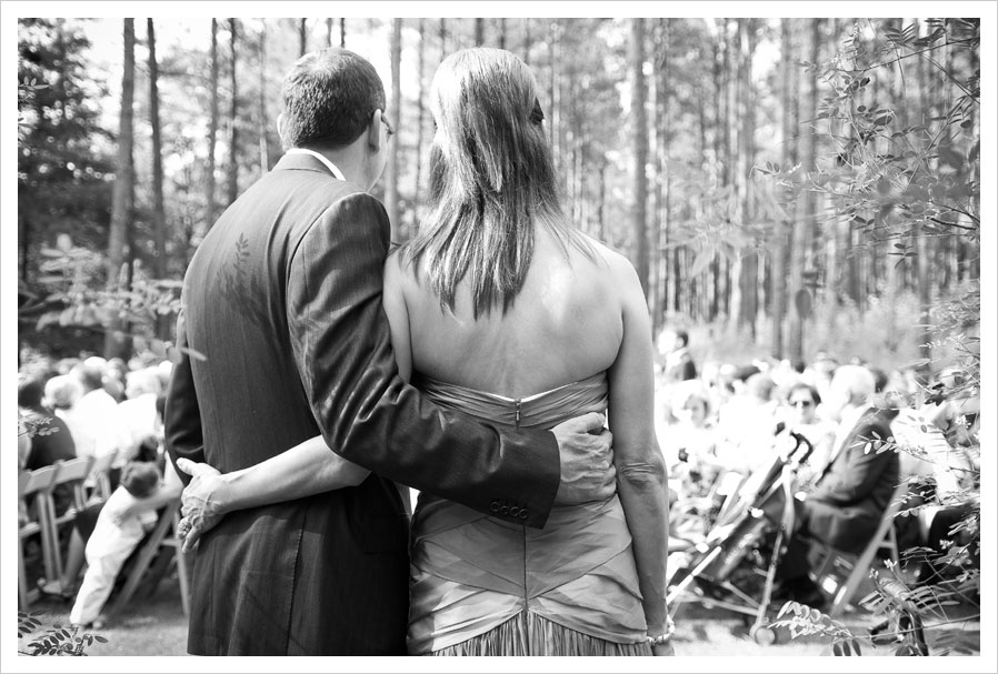 as the ceremony drew near, we zipped through fields and forest to arrive just in time to walk down the aisle. i love that matt was in the perfect position to capture this sweet moment between colleen’s parents as they looked over the beautiful scene of their families and closest friends waiting in the clearing for their daughter and her groom. such proud parents: